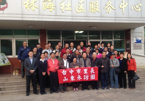 參訪團由臺中市南區、西區14位里長及市政府、區公所等工作人員組成,洪金敏(博士)領隊。參訪團一行先后來到林海社區和城市花園社區。在林海社區活動室內,居民以歌舞表達了對遠道而來客人的歡迎,有居民當場揮筆寫下《觀滄海》并贈予臺灣參訪團;在城市花園社區,參訪團觀看了“全為您”等便民服務工作演示,參觀了閱覽室、老年人活動室等綜合服務設施,并分別聽取了2個社區負責人關于社區建設情況的匯報。