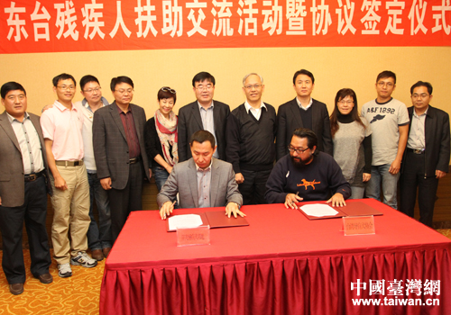 中國臺灣網11月21日東營消息 11月20日上午,東臺殘疾人扶助交流活動座談會暨協議簽約儀式在山東東營市藍海大飯店舉行,臺灣導盲犬協會理事長謝韻明,中央電視臺正大綜藝著名外景主持人李秀媛及市臺辦、市殘聯領導同志參加了此次簽約儀式。