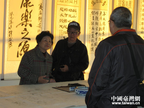 客人們參觀青島城陽區(qū)夏莊社區(qū)居民書畫展示室。(青島臺辦供圖)