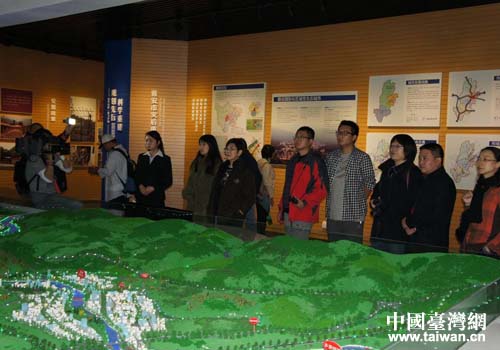 臺灣中時媒體集團采訪組一行在雅安采訪拍攝“4.20”地震災后重建規劃展。(圖片來源:四川省臺辦)