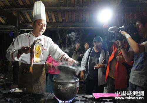 臺灣中時媒體集團采訪組一行采訪拍攝著名的“雅魚”現場烹制。(圖片來源:四川省臺辦)