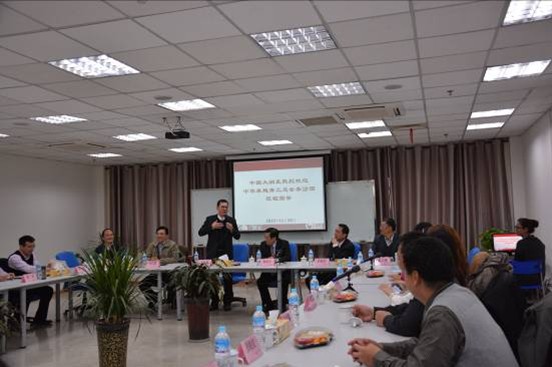 林政豐一行與大潤發華北區總經理吳春相等人座談交流(濟南臺辦供圖)
