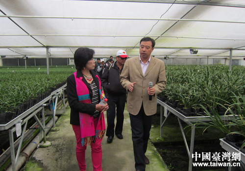 參觀廬江縣臺(tái)創(chuàng)園臺(tái)商投資的蘭草種植園區(qū)。(圖片來(lái)源:安徽省臺(tái)聯(lián))