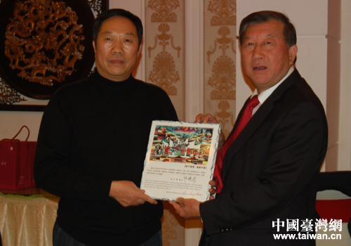 互贈(zèng)禮品。(圖片來(lái)源:鄭州市臺(tái)辦)