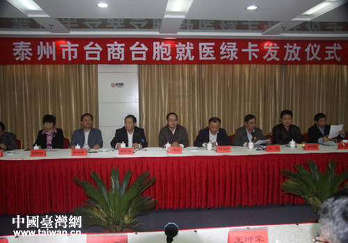 泰州市臺辦建立臺商就醫保健綠色通道并發放就醫綠卡。(圖片來源:泰州市臺辦)