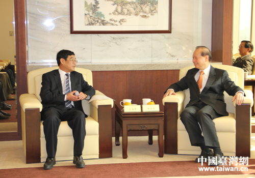 王海鷹與親民黨秘書長(zhǎng)秦金生座談。(圖片來(lái)源:河南省臺(tái)辦)
