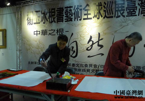中國臺灣網1月21日臺北消息 近年來,四川與臺灣交流越來越密切,巴蜀文化精品頻頻亮相臺灣。2014年1月10日至26日,由四川和臺灣兩地相關機構聯合主辦的中國根書藝術大師、鄉土藝術大師楊玉冰根書藝術展首度在臺北隆重開展。中國國民黨副主席、嘉義市市長黃敏惠,臺北市文化局局長劉維公、副局長林慧芬,臺灣資深青商總會主席鄭耀輝,臺灣工商建設研究會理事長雷祖綱以及臺灣藝術界名流和廣大臺灣民眾參觀了展覽。