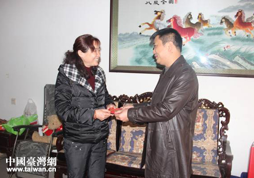 中國(guó)臺(tái)灣網(wǎng)1月24日石門(mén)消息 1月22日,中共石門(mén)縣委常委、統(tǒng)戰(zhàn)部長(zhǎng)夏先雙走訪(fǎng)慰問(wèn)常住臺(tái)胞趙詩(shī)賦先生和臺(tái)屬?gòu)執(zhí)以浚瑸樗麄兯腿バ麓鹤8!#ㄖ袊?guó)臺(tái)灣網(wǎng)石門(mén)縣臺(tái)辦通訊員 粱瓊?cè)A)