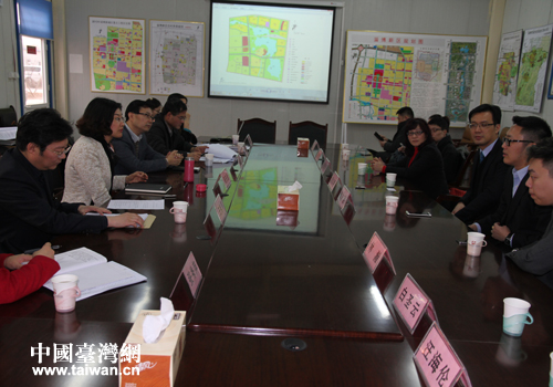 吳志剛一行聽取副市長張慶盈(左二)對淄博新區(qū)規(guī)劃建設(shè)的有關(guān)情況介紹。(圖片來源:淄博市臺辦)