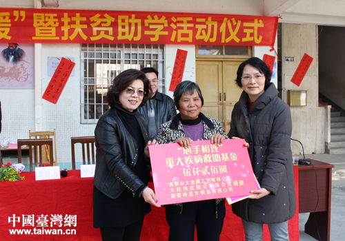 當(dāng)天上午,市臺(tái)辦和市臺(tái)商協(xié)會(huì)共帶來6萬3千多元慰問金,向當(dāng)?shù)氐?0戶扶貧戶、低保戶、和五保戶以及32名貧困學(xué)生發(fā)放,并鼓勵(lì)貧困戶們努力發(fā)展生產(chǎn),通過多種方式增加家庭收入,提高生活水平;隨后,又走訪看望了大崗村部分病困戶和貧困戶活動(dòng)現(xiàn)場(chǎng),同時(shí)捐贈(zèng)了1萬元作為該村衛(wèi)生村的建設(shè)金。