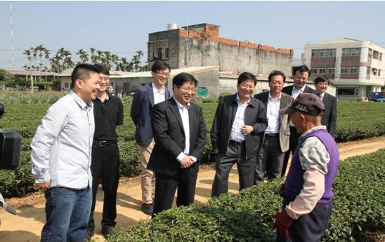 10月26日,徐景顏市長(zhǎng)(左四)帶領(lǐng)淄博市經(jīng)貿(mào)文化考察團(tuán)在臺(tái)灣南投縣名間鄉(xiāng)松柏嶺茶園開展“基層交流南部行”活動(dòng),與茶農(nóng)座談交流。