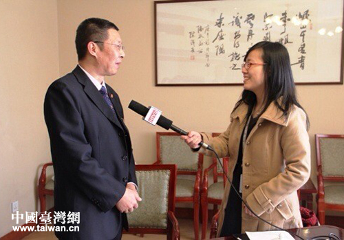 臺胞界別委員游季江接受杭州電視臺采訪。(圖片來源:杭州市臺辦)