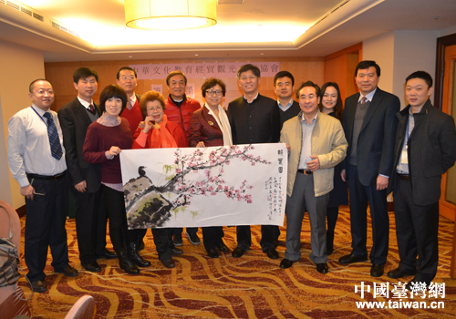 中國(guó)臺(tái)灣網(wǎng)2月13日臺(tái)北消息 2月12日,應(yīng)中華海峽兩岸企業(yè)交流協(xié)會(huì)邀請(qǐng),來(lái)臺(tái)出席第三屆高雄燈會(huì)節(jié)暨北京特色周活動(dòng)的大陸書(shū)畫(huà)名家與臺(tái)灣知名書(shū)畫(huà)家在臺(tái)北舉行交流筆會(huì)。臺(tái)灣中華文耀文教經(jīng)貿(mào)交流協(xié)會(huì)理事長(zhǎng)、臺(tái)灣畫(huà)家呂玉環(huán)主持筆會(huì),程茂全、張和平、王興家、慕云五等與臺(tái)灣畫(huà)院副院長(zhǎng)盧錫炯合作獻(xiàn)藝,共敘友情賀新春。(中國(guó)臺(tái)灣網(wǎng)北京通訊員 郭寧 王正智)