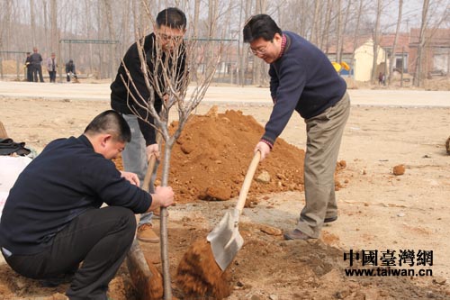 中國臺灣網(wǎng)3月10日淄博消息 3月9日,在第35個植樹節(jié)來臨之際,淄博市臺辦全體干部職工在臺辦領導的帶領下,行程百余公里,來到臺辦“第一書記”派駐工作村--博山區(qū)博山鎮(zhèn)上瓦泉村,進行義務植樹活動。