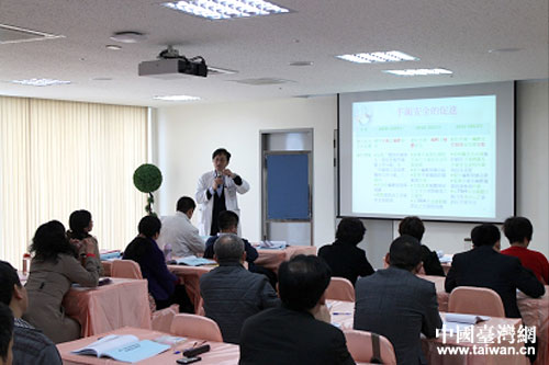 臺(tái)灣醫(yī)學(xué)專家給大家講課。(圖片來(lái)源:池州市臺(tái)辦)