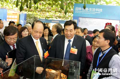中國臺灣網4月21日壽光消息 春暖花開,菜果飄香。4月20日,以“綠色、科技、未來”為主題的第十五屆中國(壽光)國際蔬菜科技博覽會在山東省壽光市拉開帷幕,再度向世人奉獻一道道氣勢恢宏的三農盛宴。20日上午,臺灣;鶗麻L林中森、副董事長馬紹章率海基會文化參訪團出席第十五屆中國(壽光)國際蔬菜科技博覽會開幕式,并參觀了第三屆臺灣農產品精品展示展銷會,與部分在山東投資的臺商代表進行了座談。