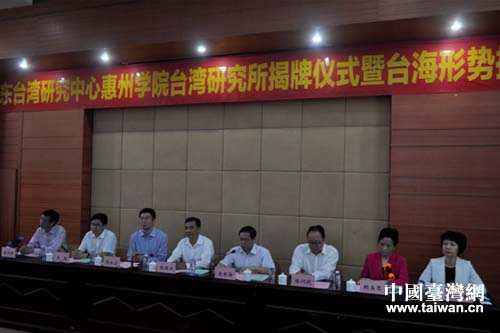 陳國興主任在致辭中指出,廣東是改革開放的前沿陣地,也是對臺工作的大省。隨著兩岸和平穩定發展趨勢越來越穩固,兩岸大交流、大合作、大發展的格局逐步形成,推動粵臺兩地全面交流合作顯得尤為迫切;葜菔且粋人文薈萃、英雄輩出的城市,無論是從歷史還是從現實來看,都在海峽兩岸的交流合作中有著非常重要的地位。惠州是對臺工作的大市,臺資企業數量、投資規模僅次于東莞、深圳、廣州,占了臺資在全省的很大投資份額。廣東臺灣研究中心此前在廣州、汕頭、湛江等地成立了9個研究所;葜輰W院臺灣研究所的成立將更好地服務涉臺工作。希望相關各方緊密合作,不斷拓寬研究領域,開創對臺工作新局面。