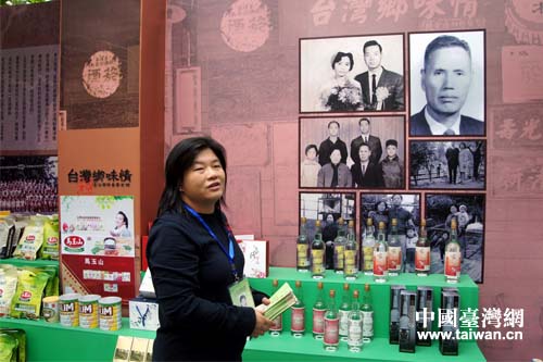 臺商韓采恩在“臺灣館”設(shè)“臺灣鄉(xiāng)味情”展位。(圖片來源:山東省臺辦)