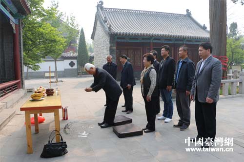 在王氏宗親的陪同下來到祖堂,臺胞王錫承率家人一起祭拜祖先。(圖片來源:淄博市臺辦)