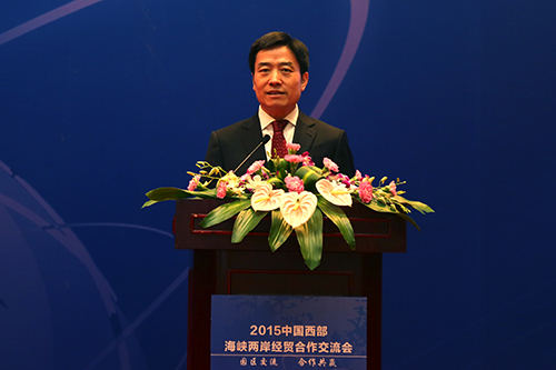 中國臺灣網9月23日四川訊 9月22日上午,2015中國西部海峽兩岸經貿合作交流會在四川舉行,國務院臺辦副主任龍明彪,四川省政府副省長甘霖,四川省政協副主席楊興平,中國國民黨前副主席、臺中市前市長、臺灣旺旺集團副董事長胡志強、全國臺企聯榮譽會長丁鯤華等出席交流會。臺灣知名產業園區負責人、專家學者、全國臺企聯及大陸部分臺資企業代表,大陸各地和島內的青年臺商,四川省級有關部門負責人,重慶、云南、陜西等西部省市臺辦、涉臺園區的代表,四川各地園區、企業有關負責人等共計300余人參加會議。