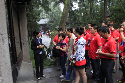 研習營一行首先參觀了武侯祠與錦里。在武侯祠,來自四川大學歷史文化學院的著名三國歷史文化專家方北辰為營員們上了一堂特殊的“商業課”。方教授以《諸葛亮出山之謎》為題,從商業運作、人才培養等角度重新解讀了“劉備三請諸葛亮”這一大家耳熟能詳的歷史故事,給營員們帶來了不一樣的三國文化體驗。方教授講完后,意猶未盡的營員們踴躍提問,與方教授熱情互動,現場掌聲、歡笑聲絡繹不絕。