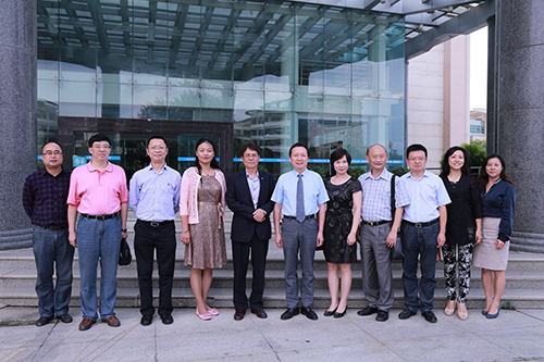 西南科技大學副校長羅學剛與臺灣輔仁大學副校長李天行一行合影留念。(圖片來源:綿陽市臺辦)