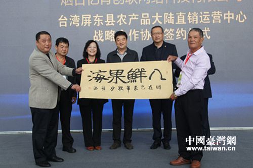 參訪團16日參加了第十六屆煙臺國際果蔬食品博覽會,并將從臺灣帶來的三千斤新鮮水果在果蔬會上展示,成為果蔬會的一大亮點。果蔬會上還舉行了屏東縣農產品大陸直銷運營中心成立儀式和臺灣原雅堂集團與煙臺億青創聯網絡科技有限公司合作協議簽署儀式。