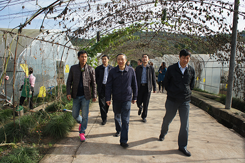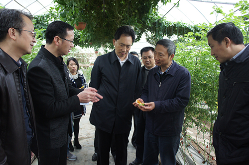 四川省臺(tái)辦主任周敏謙(右二)在廣安市前鋒國(guó)家現(xiàn)代農(nóng)業(yè)示范區(qū)調(diào)研。