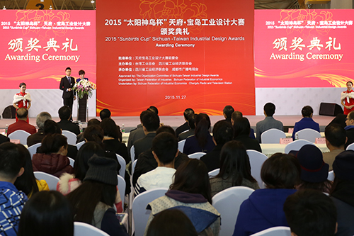 2015“太陽(yáng)神鳥(niǎo)杯”天府·寶島工業(yè)設(shè)計(jì)大賽頒獎(jiǎng)典禮現(xiàn)場(chǎng)。