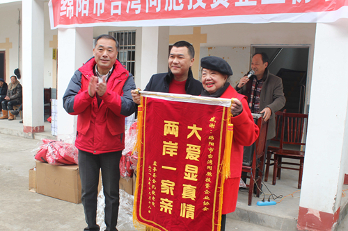 鹽亭縣金孔敬老院向綿陽市臺協贈送錦旗。