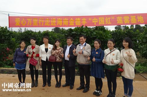 海南省殘聯理事長符永(右五)、黃益豐(右四)等在蓮霧基地合影。(圖片來源:海南省臺辦)