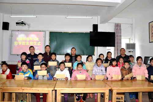廣元市臺辦主任任文剛一行在劍閣縣龍源鎮(zhèn)小學(xué)發(fā)放臺商助學(xué)款。