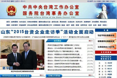 圖:中共中央臺辦、國務院臺辦官網以“本網頭條”報道山東省“2015臺資企業走訪季”活動