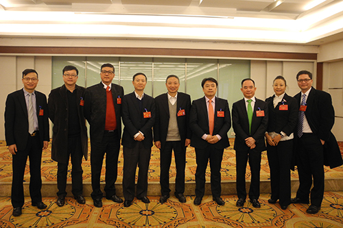 四川省臺辦主任、省政協(xié)港澳臺僑和外事委員會主任周敏謙(左五)和省委統(tǒng)戰(zhàn)部常務副部長聶文強(左四)看望列席會議的僑胞、臺胞代表。