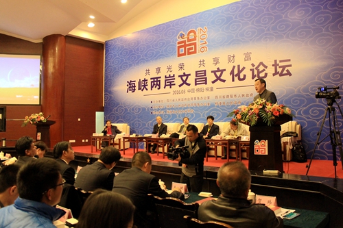 張錦明在致詞中說,梓潼縣繼2011年舉辦第一屆海峽兩岸文昌文化交流活動以來,慕名前往七曲山拜文昌的臺灣同胞絡繹不絕,進一步推動了文昌文化的交流,增進了兩岸民眾的中華文化認同。今天,海峽兩岸專家學者再次聚首,深入研討文昌文化,既是傳承中華民族優秀傳統文化的歷史必然,也是兩岸人民弘德崇文的現實需求。我們深信,通過大家的深入研究探尋,真知灼見,相互交融,思想火花激烈碰撞,必將形成系列寶貴文昌文化交流成果,進一步推動文昌文化發揚光大。