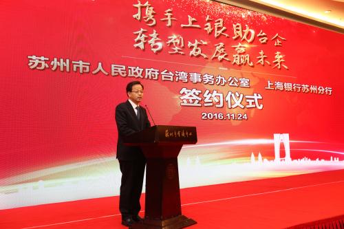 楊峰表示,作為全省乃至祖國大陸臺資最密集的地區之一,蘇州市率先推進落實9月5日江蘇省銀企對接會成果,聯合上海銀行蘇州分行舉辦這次活動,進一步幫助臺資企業特別是中小企業解決融資難問題,為促進銀行臺企互利合作,推動臺資企業轉型升級向更高水平邁進具有重要意義。