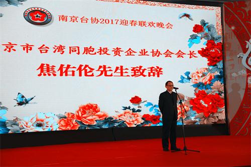 南京市臺協會長焦佑倫代表協會感謝市委、市政府和省、市臺辦及顧問單位對臺協的關心和支持,表示將繼續秉持宗旨,突出寧臺經貿合作,深入做好在寧臺企服務工作,也請市委、市政府一如既往關心支持臺協和在寧臺資企業的發展!