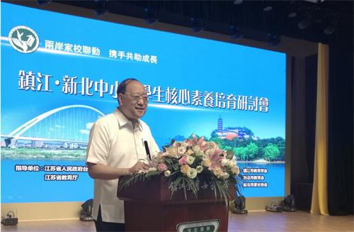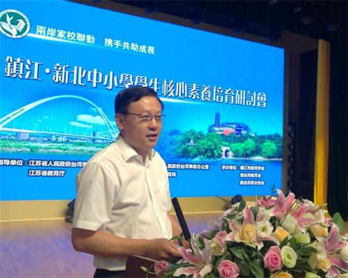 鎮江市教育局黨委成員、辦公室主任竇玉成先生首先致辭。竇玉成說,這是兩岸教育界的一次有益互動,也是兩地的一次友好往來!霸诮逃@個問題上,兩岸有太多互研互通、互學互鑒的空間。此次研討就是希望雙方以開放的視野共同成長,以家校聯動提升協作合力。”