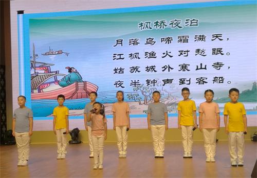 圖為鎮江少年宮的同學表演詩朗誦《楓橋夜泊》。