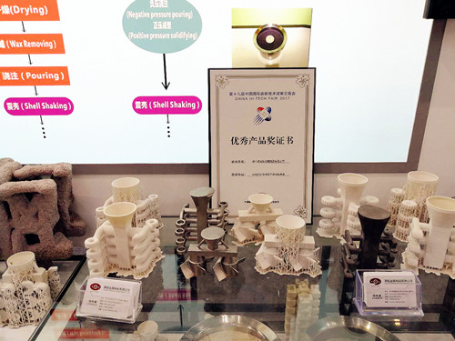 連云港臺(tái)資企業(yè)---連云港源鈺金屬制品公司作為連云港市唯一獲邀參展企業(yè),首次亮相高交會(huì),展位位于最大的1號(hào)館:“信息技術(shù)與產(chǎn)品展 ”主題展館。本屆高交會(huì)上,連云港源鈺金屬制品公司帶來了3D打印技術(shù)在精密鑄造產(chǎn)品中的解決方案——采用3D打印殼模之快速鑄造法、負(fù)壓澆鑄正壓成型技術(shù);其中3D打印殼模產(chǎn)品等更彰顯連云港源鈺金屬制品公司的技術(shù)實(shí)力。期間,吸引了眾多觀眾駐足、交流,紛紛對(duì)公司優(yōu)秀的產(chǎn)品及專業(yè)的技術(shù)介紹給予了高度肯定。會(huì)后,組委會(huì)傳來喜訊:連云港源鈺金屬制品公司高交會(huì)現(xiàn)場(chǎng)展出的“采用3D打印殼模之快速鑄造法”經(jīng)過層層評(píng)選,獲得了由高交會(huì)組委會(huì)頒發(fā)的優(yōu)秀產(chǎn)品獎(jiǎng)。