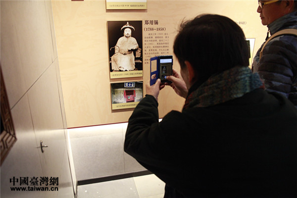 《臺灣導(dǎo)報(bào)》副社長吳惠民在會館拍攝鄭用錫位于臺灣新竹進(jìn)士第的照片。他表示回去將去新竹去看看。(中國臺灣網(wǎng) 郜利敏 攝)