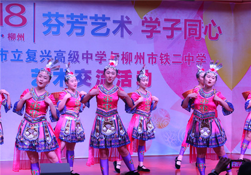 復興高中師生們在柳鐵二中老師同學們陪伴下,參觀該校書畫工作室、古箏工作室、書畫館,并到學校藝術中心參觀器樂、聲樂、播音、戲劇、舞蹈專業(yè)功能室展示和運動區(qū)體育專業(yè)訓練。柳鐵二中校長覃桂寧介紹了柳鐵二中校園文化營造、課程設置、校舍建設、辦學特色等情況。兩校同學們用不同樂器演奏出動聽的旋律,用優(yōu)美的舞姿展現(xiàn)藝術的魅力,還交換紀念禮物,互加微信,共敘友誼。