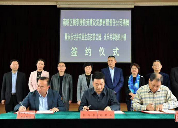中國臺灣網(wǎng)4月13日貴陽訊 日前,貴陽市南明區(qū)桃李漫投資建設(shè)發(fā)展有限責(zé)任公司揭牌暨“永樂甘井農(nóng)業(yè)生態(tài)百貨公園”項目、“永樂共享綠色小鎮(zhèn)”項目簽約儀式舉行,標(biāo)志著我區(qū)深入貫徹落實“鄉(xiāng)村振興戰(zhàn)略”,搶抓貴陽市“旅游環(huán)線”建設(shè)歷史機(jī)遇,推動永樂鄉(xiāng)富美鄉(xiāng)村、特色小鎮(zhèn)建設(shè)進(jìn)入了新階段,而該鄉(xiāng)永樂村、干井村、水塘村,也將迎來大發(fā)展、舊貌換新顏。南明區(qū)委書記朱麗霞、區(qū)長朱剛、區(qū)政協(xié)主席羅俊,臺灣臺一集團(tuán)董事長張國禎、貴州大秦世紀(jì)企業(yè)集團(tuán)董事長秦剛、融創(chuàng)中國西南區(qū)域貴陽公司城市總經(jīng)理李杰出席簽約儀式,儀式由南明區(qū)委副書記田勝松主持。