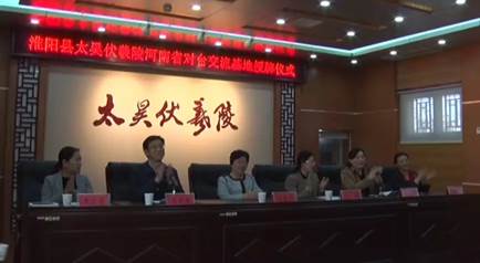 省臺辦交流處工作人員宣讀了河南省臺辦《關于同意周口市淮陽縣太昊伏羲陵為河南省對臺交流基地的批復》,省臺辦副主任杜春景向淮陽縣太昊陵管理處授牌。