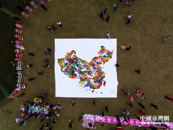 用巨幅的彩繪地圖生動詮釋“兩岸一家親”