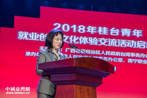 南寧市委常委、副市長何穎致辭。(圖片來源:南寧市臺辦)