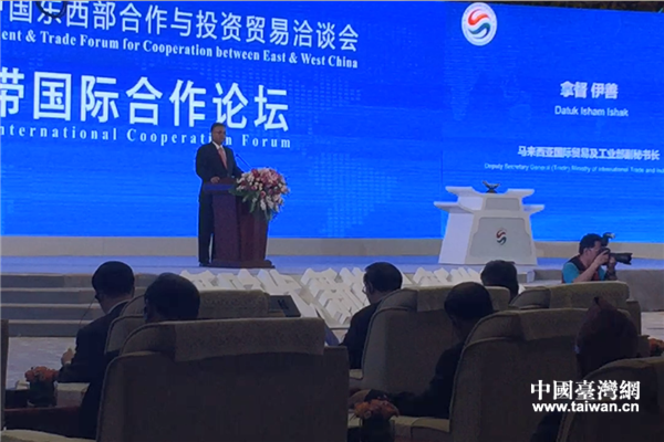 馬來西亞代表團(tuán)團(tuán)長拿督伊善出席論壇并致辭。(中國臺灣網(wǎng) 王亞靜 攝)