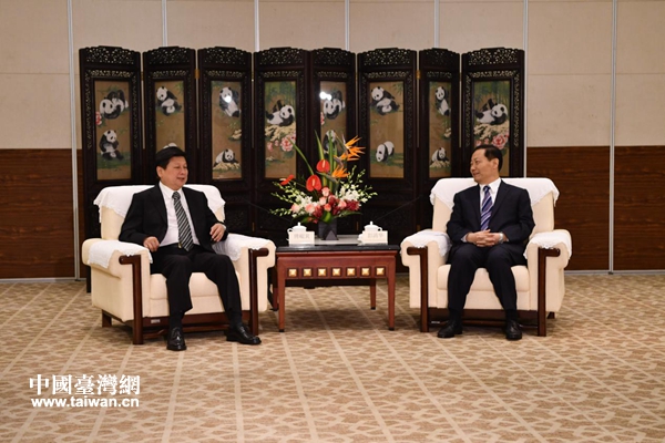 四川省委書記彭清華(右)會(huì)見臺(tái)灣花蓮縣縣長(zhǎng)傅崐萁一行。(圖片來源:四川省臺(tái)辦)