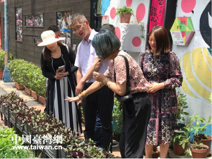 “隨手環保,財源穩保”、“綠色大地,生命永續”、“紙張勿浪費,綠樹誠可貴”……臺北市中山區劍潭里社區服務中心大樓的每一級階梯,都貼著這樣的環保小格言。在這里,參訪團一行參觀了太陽能板、中水回收系統、市民農園、節能燈具汰換等低碳設施并在生態小院澆灌生態小黃瓜并采摘品嘗。