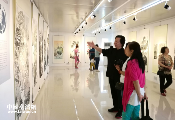 圖為藝術(shù)家為觀眾講解作品。(圖片來源:廣州市花都區(qū)臺辦)